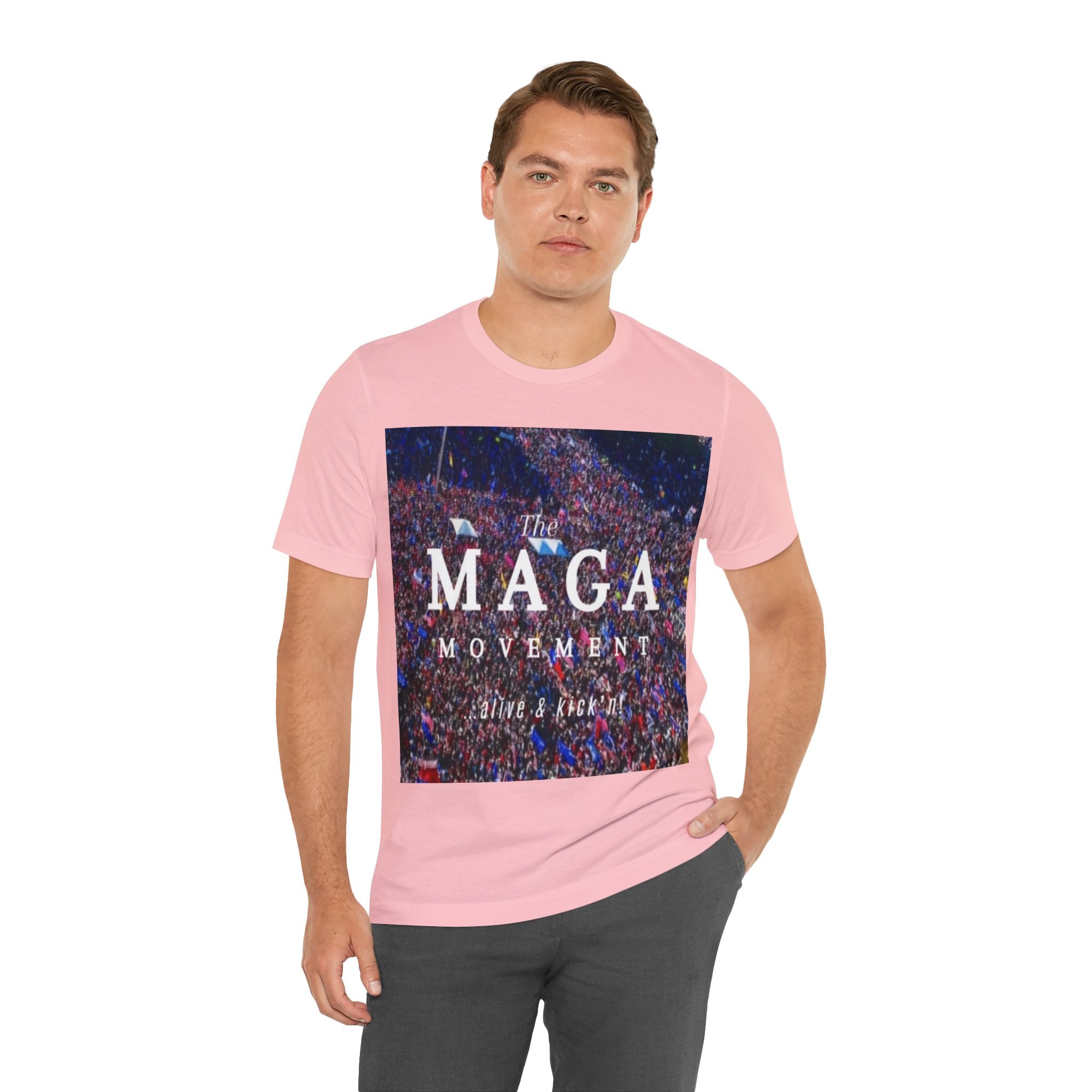 This classic US-sized authentic unisex jersey short sleeve tee fits like a well-loved favorite. Soft cotton and quality print make users fall in love with it over and over again. These t-shirts feature ribbed knit collars to maintain their shape. The shoulders are tapered for a better fit over time, and dual side seams hold the garment’s shape longer.